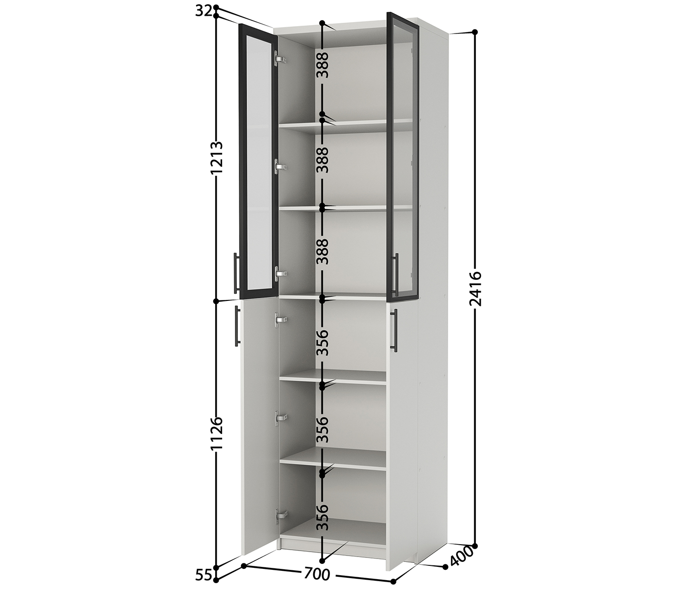 Шкаф офисный Шарм 2Д-2СТ/32 700х400х2416 Белый 24062028956