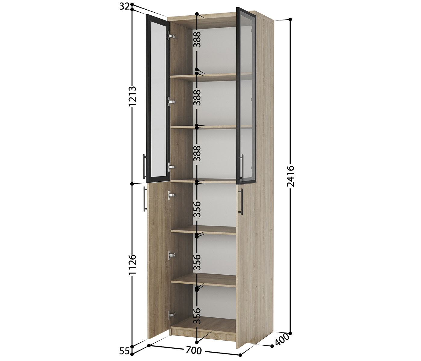 Шкаф офисный Шарм 2Д-2СТ/32 700х400х2416 Дуб Сонома 24062028957
