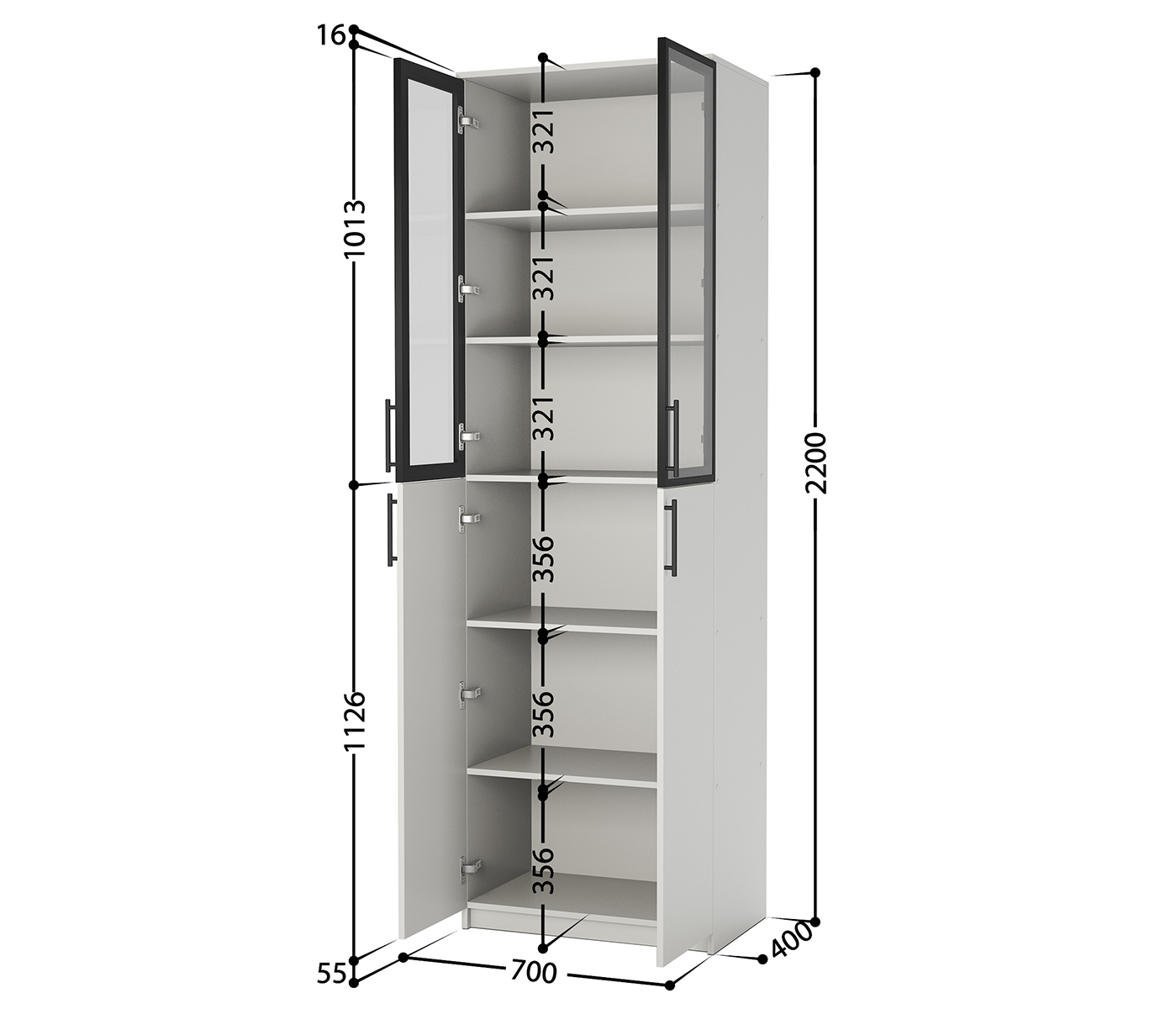 Шкаф офисный Шарм 2Д-2СТ 700х400х2200 Белый 24062028950