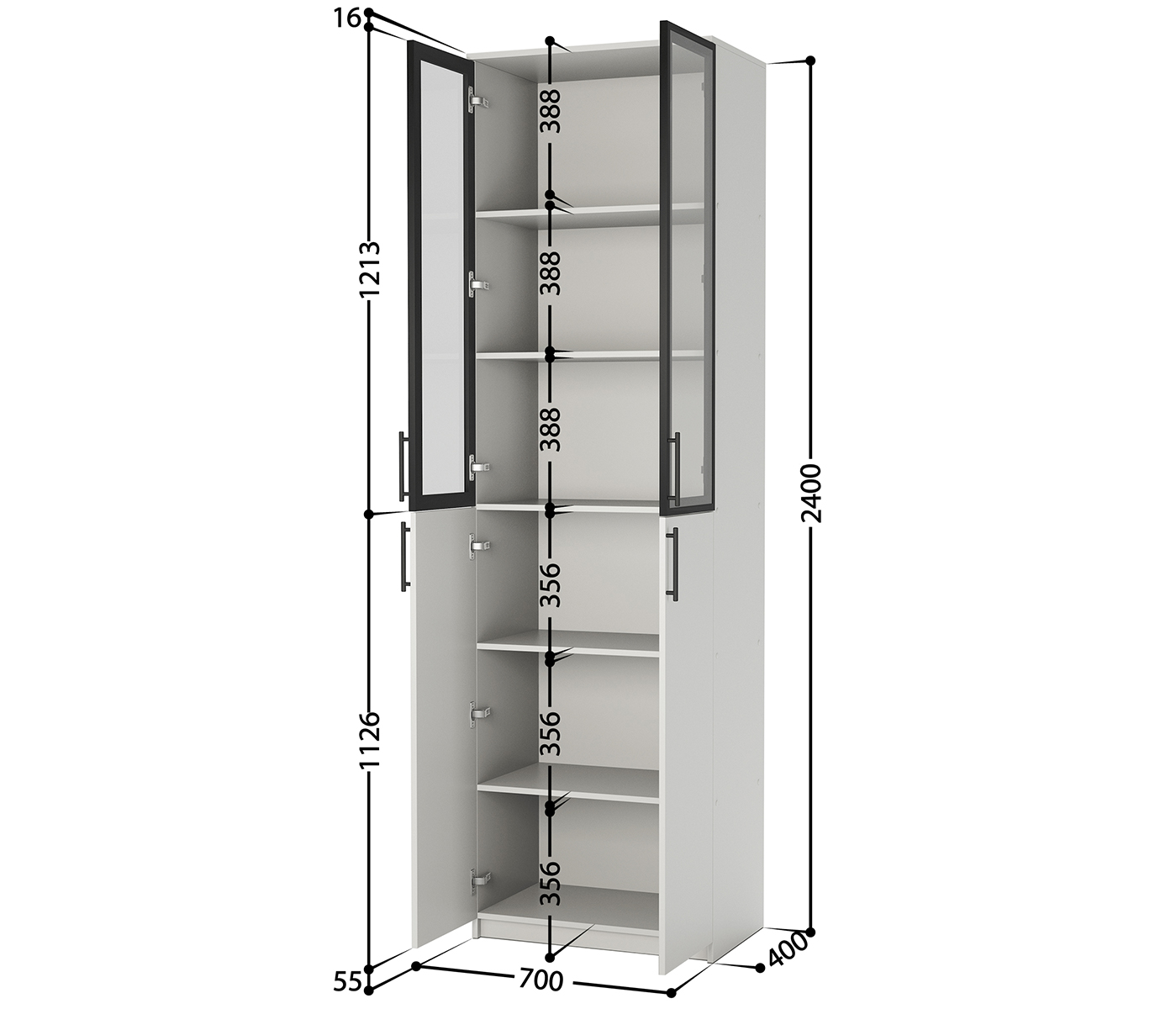 Шкаф офисный Шарм 2Д-2СТ 700х400х2400 Белый 24062028952